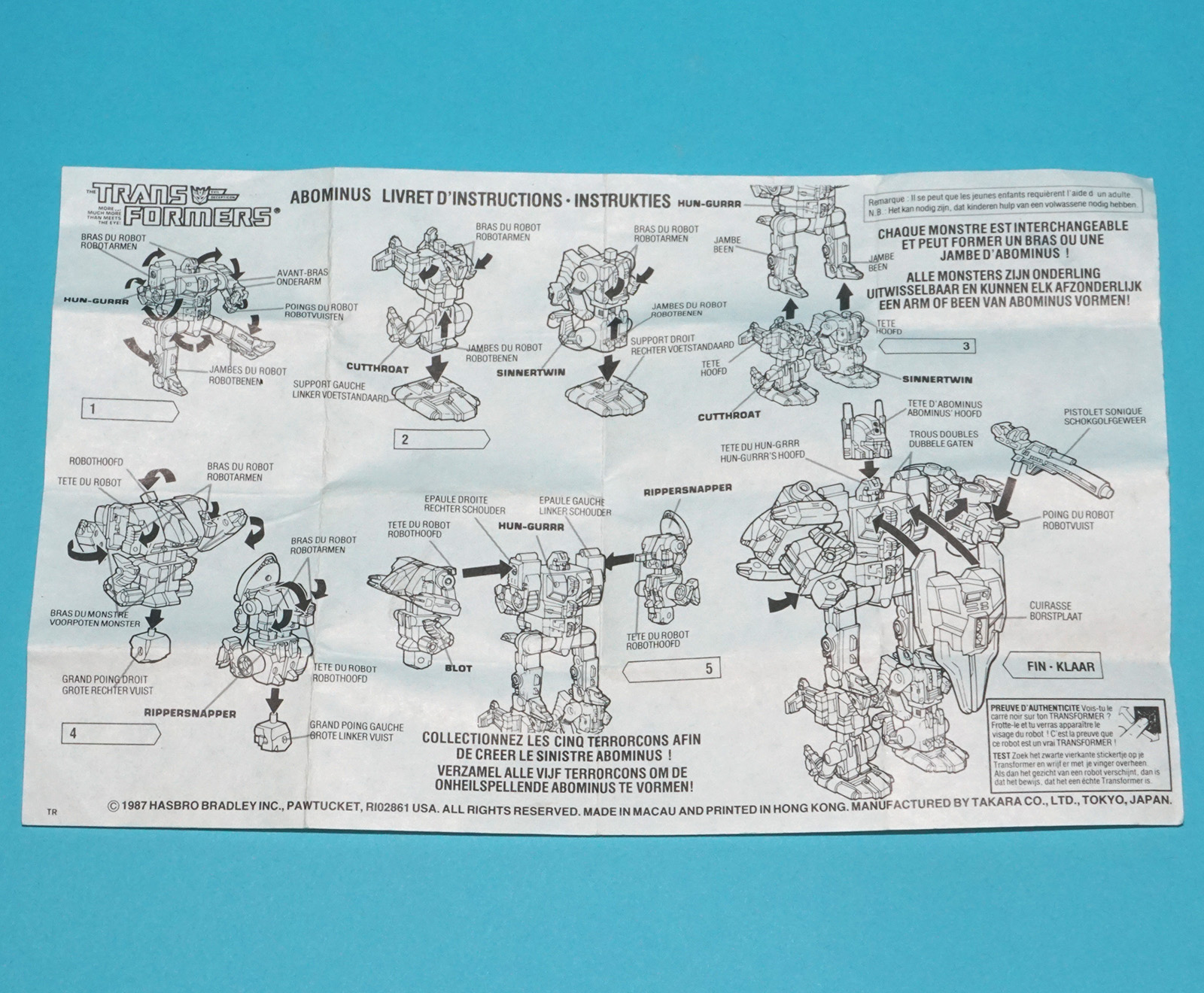 TRANSFORMERS G1 ORIGINAL SPARE INSTRUCTIONS TERRORCONS ABOMINUS RIPPERSNAPPER INSERTS US USA 1987 HASBRO TAKARA