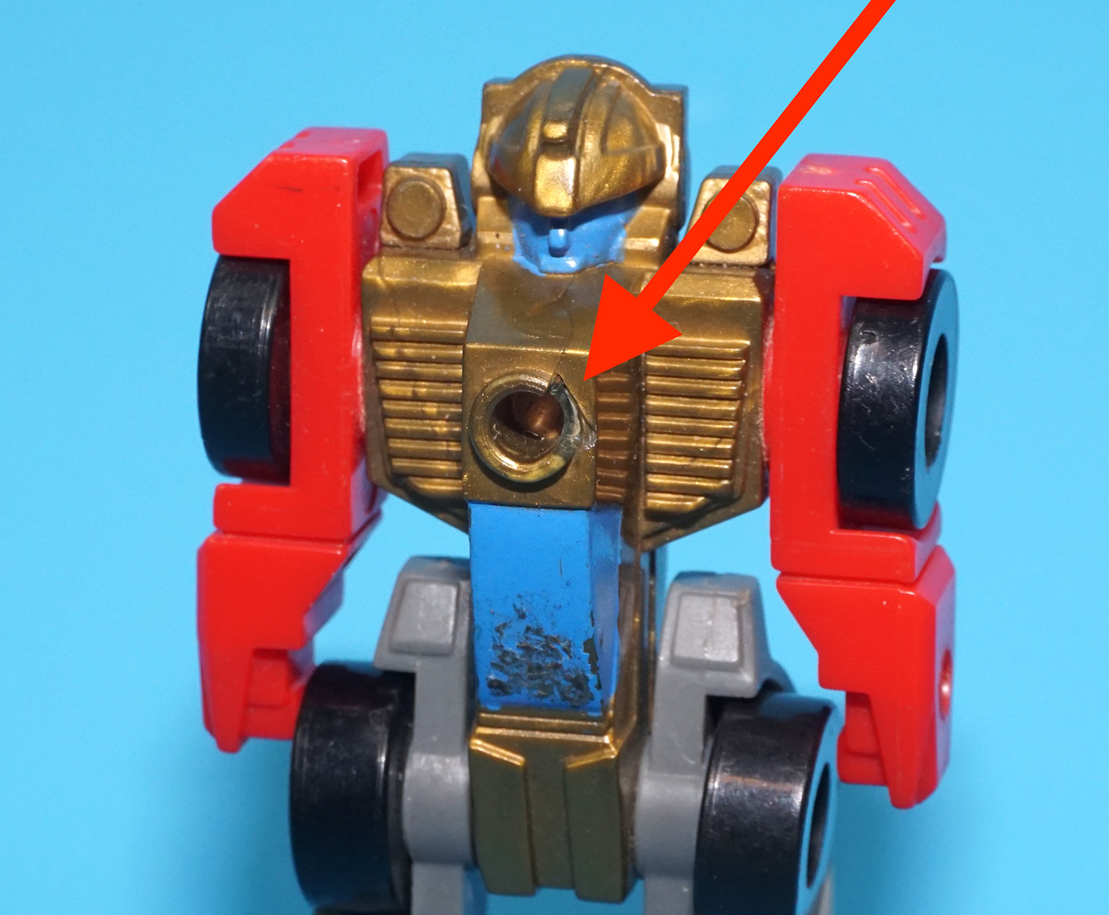 Minor damage to chest hole. See close up for details.