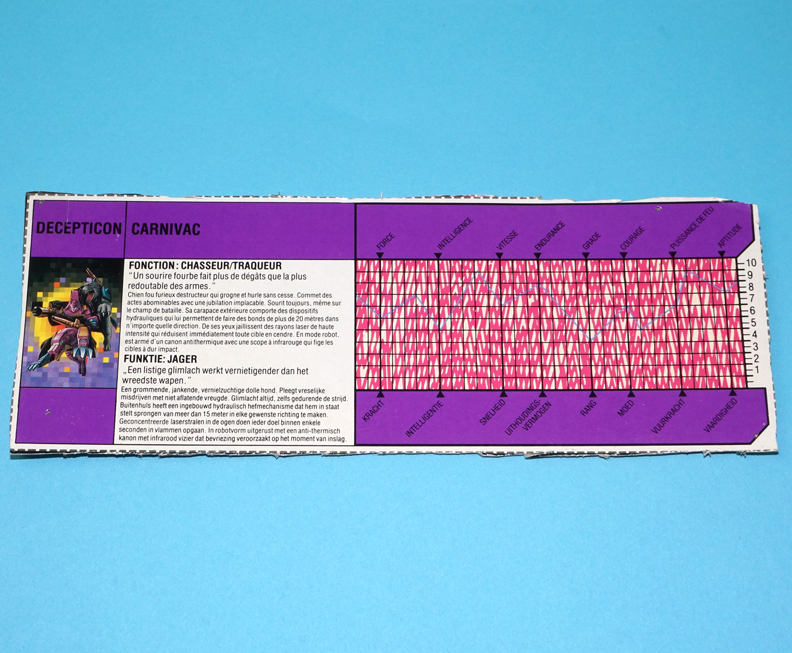 TRANSFORMERS G1 PRETENDER CARNIVAC TECH SPECS NL FR BENELUX EURO 1988 HASBRO