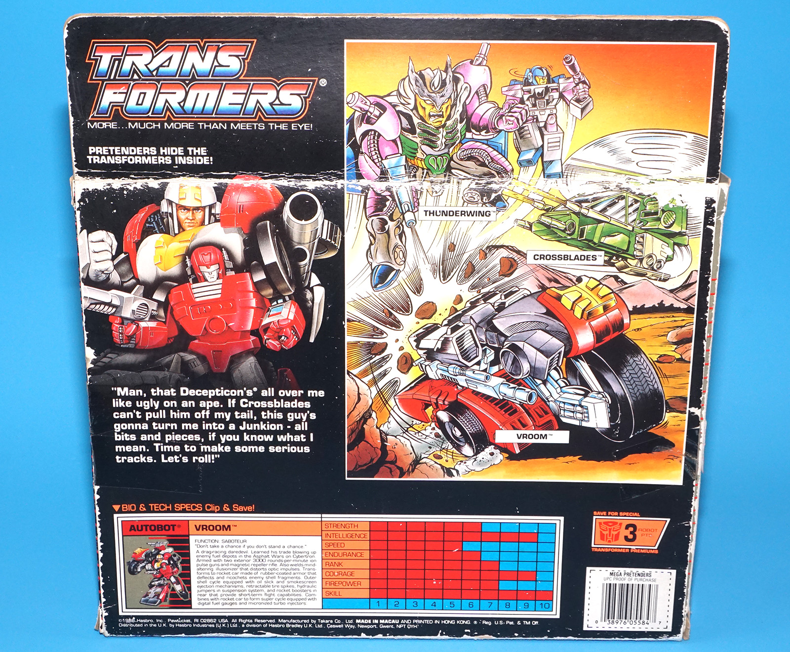 TRANSFORMERS G1 PRETENDERS VROOM ORIGINAL EMPTY EURO UK BOX 1988 HASBRO