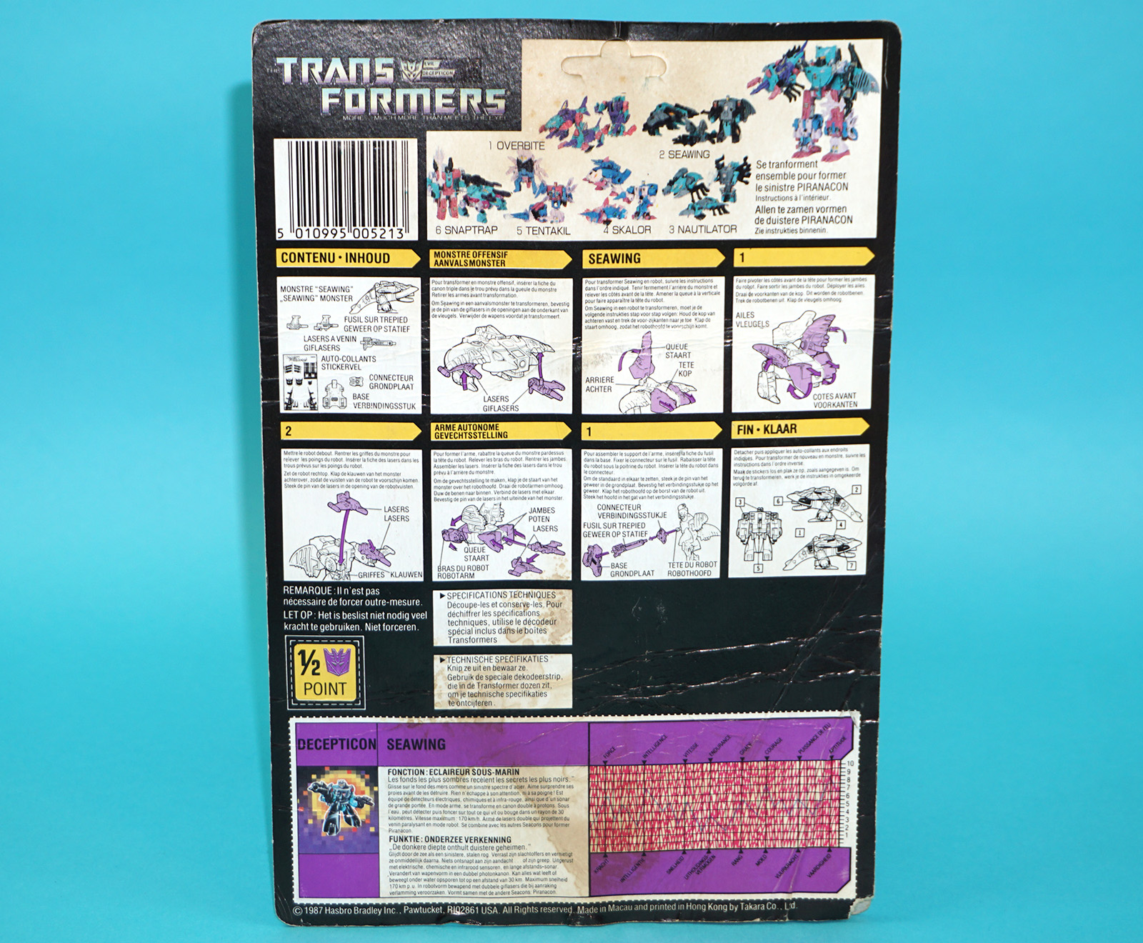 TRANSFORMERS G1 SEACONS SEAWING TECH SPECS FILE CARD CARDBACK NL FR BENELUX EURO 1987 HASBRO