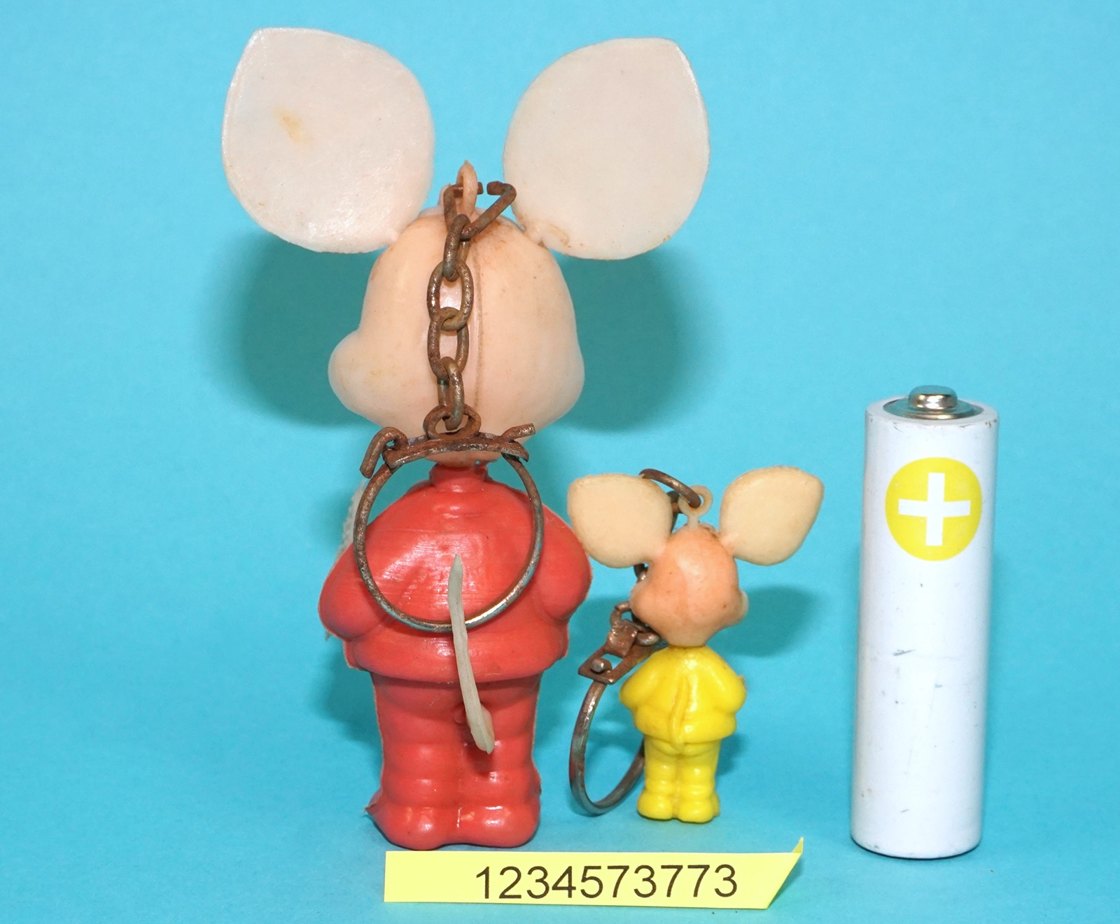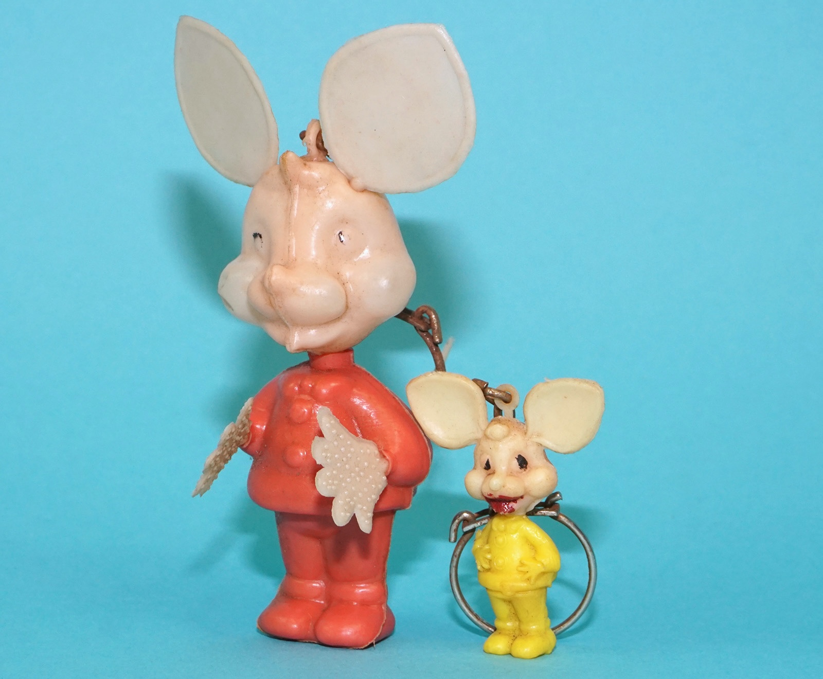VINTAGE KEYRING KEYCHAIN TOPO GIGIO LOUIE MOUSE BLOWMOLD FIGURES (2X) 1960s NOS ITALIA MOPLAS